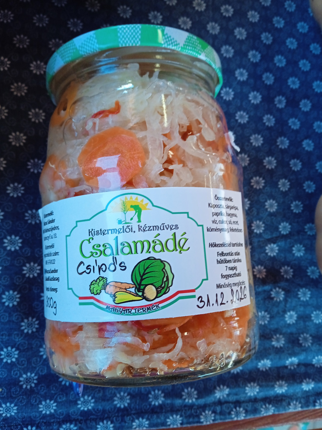 Saját termelésből származó zölségek, kellemesen csípős savanyúságnak készítve.